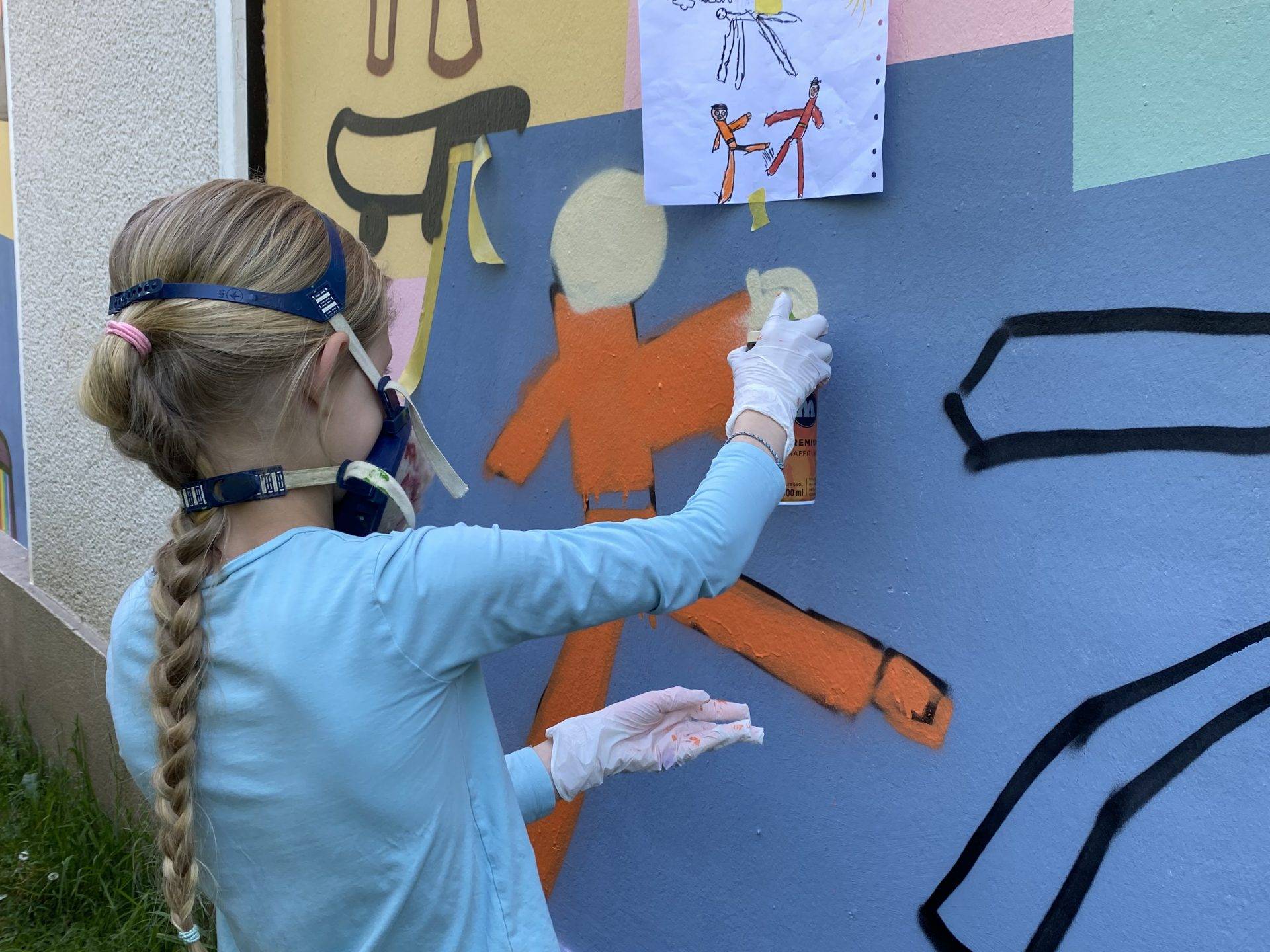 Graffiti am Weberplatz:Gemeinsam mit den TeilnehmerInnen, werden Motive (Figuren & Buchstaben) für eine Bauzaunwand neben dem Begegnungszentrum…