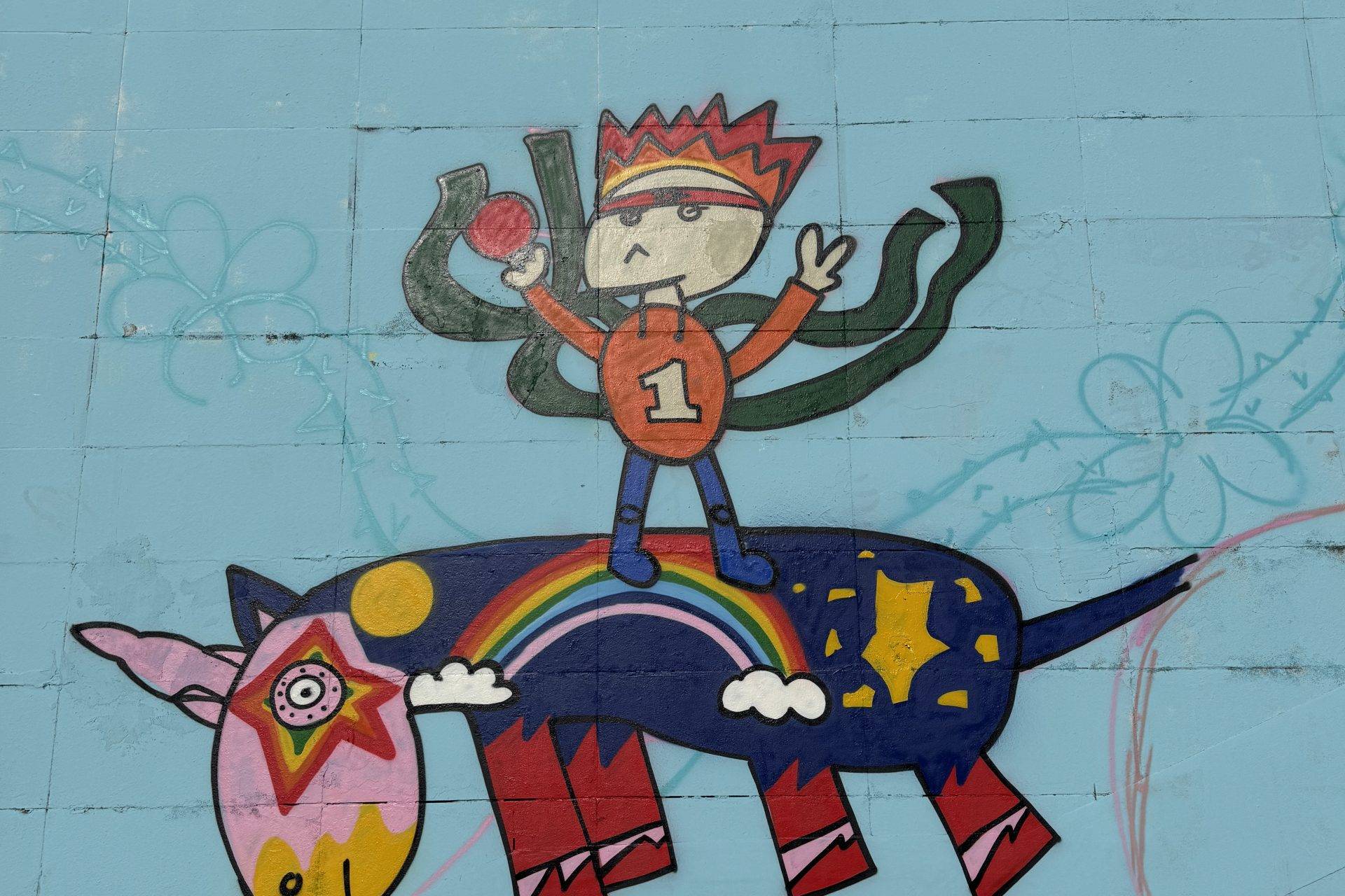 Bei diesem Kunstprojekt haben Viertklässler der Emil von Behring Schule, zunächst verschiedene Sportmotive auf Papier gezeichnet. Aus den zahlreichen eingereichten Zeichnungen, wurden insgesamt 18 Motive für die Wandgestaltung ausgewählt, und unter Anleitung an die Turnhalle auf dem Schulhof gesprüht.