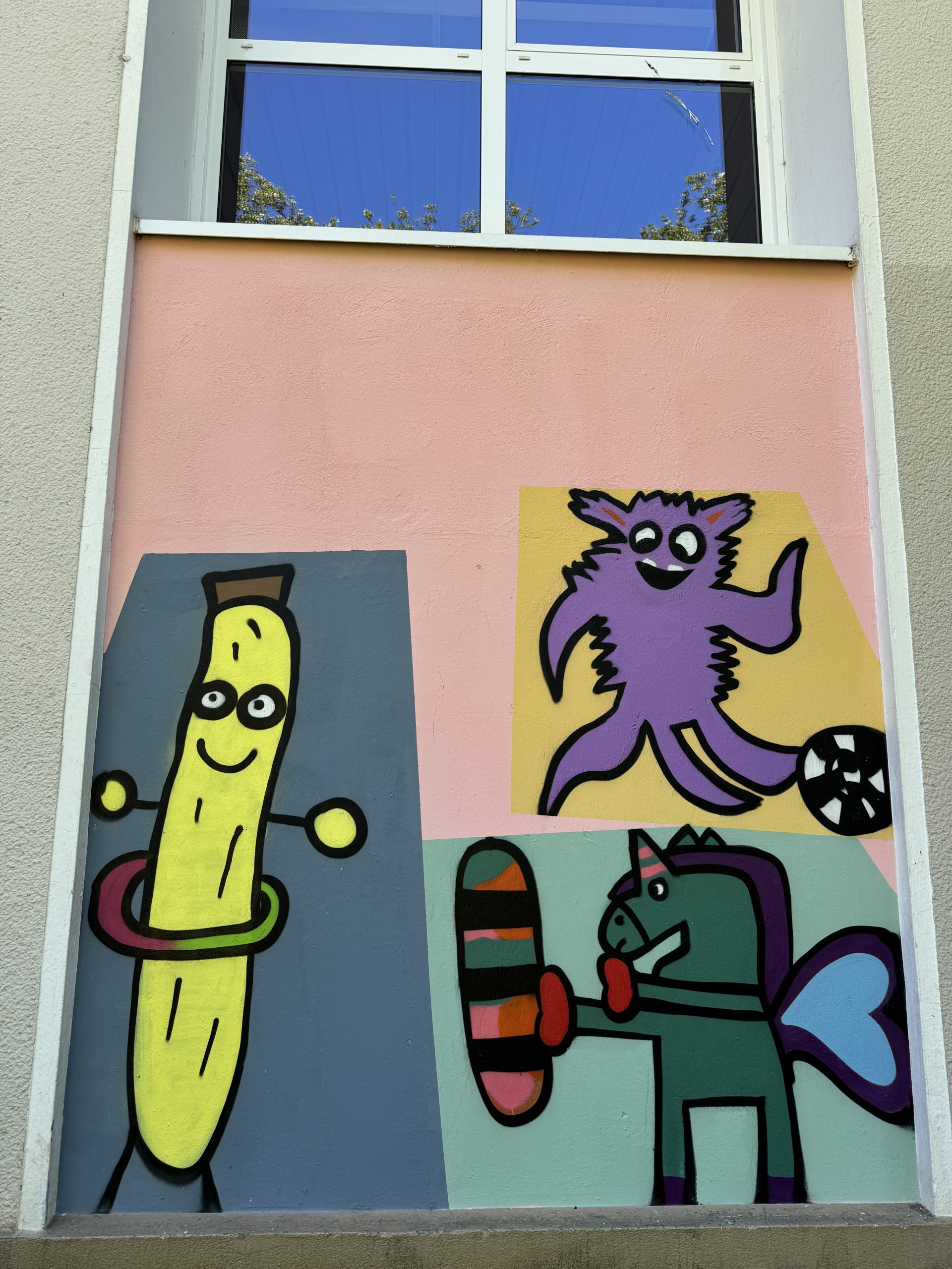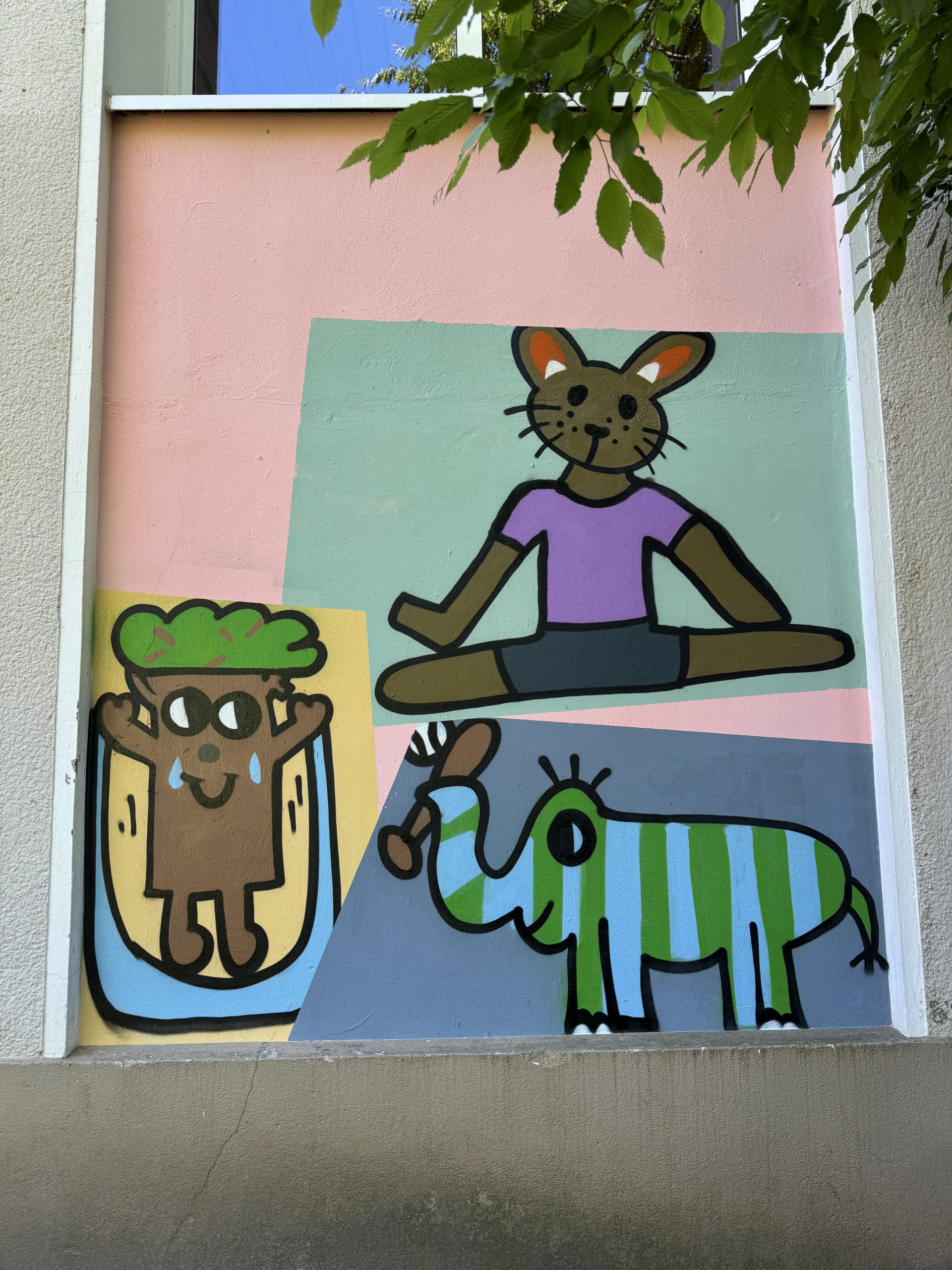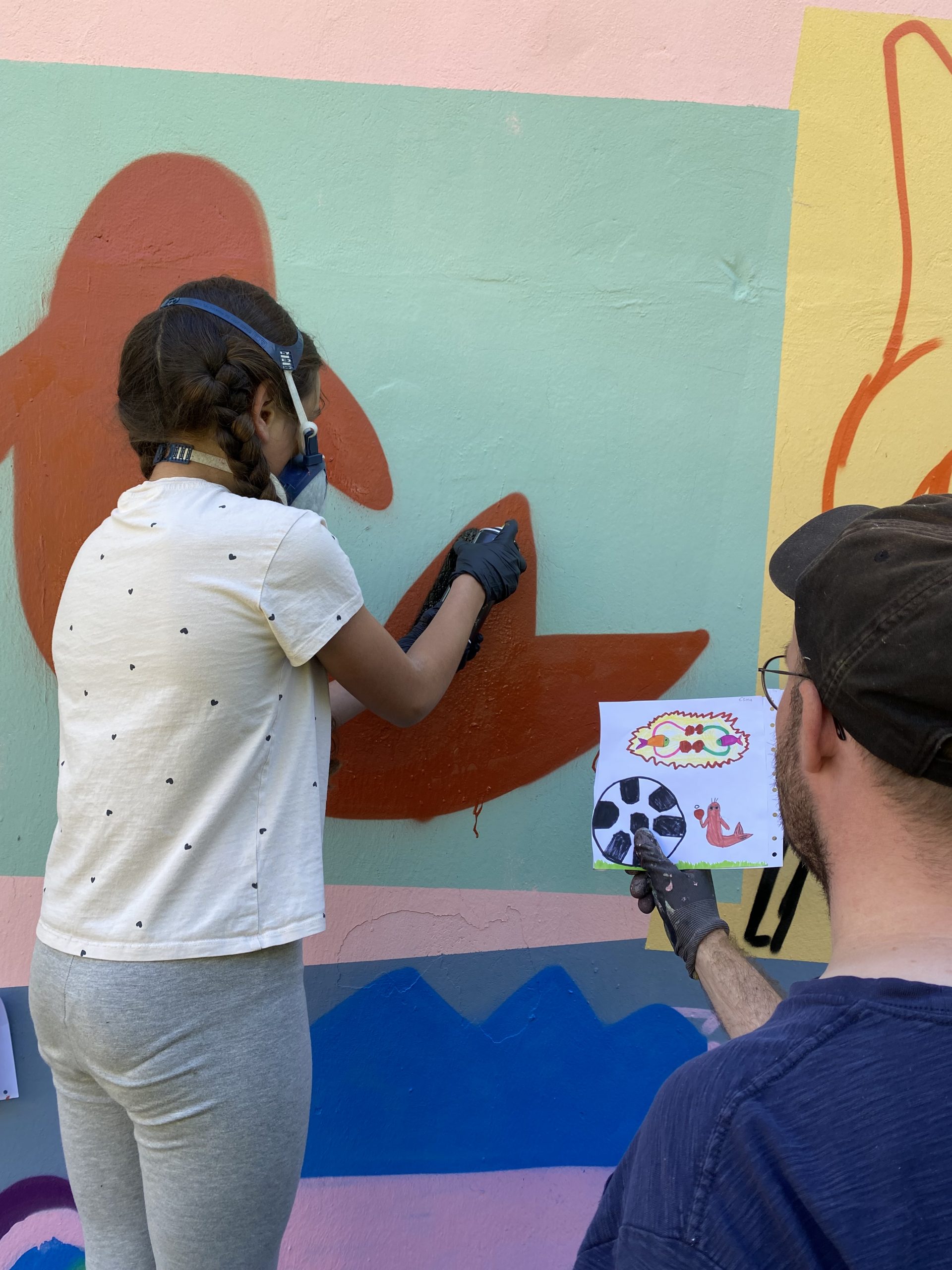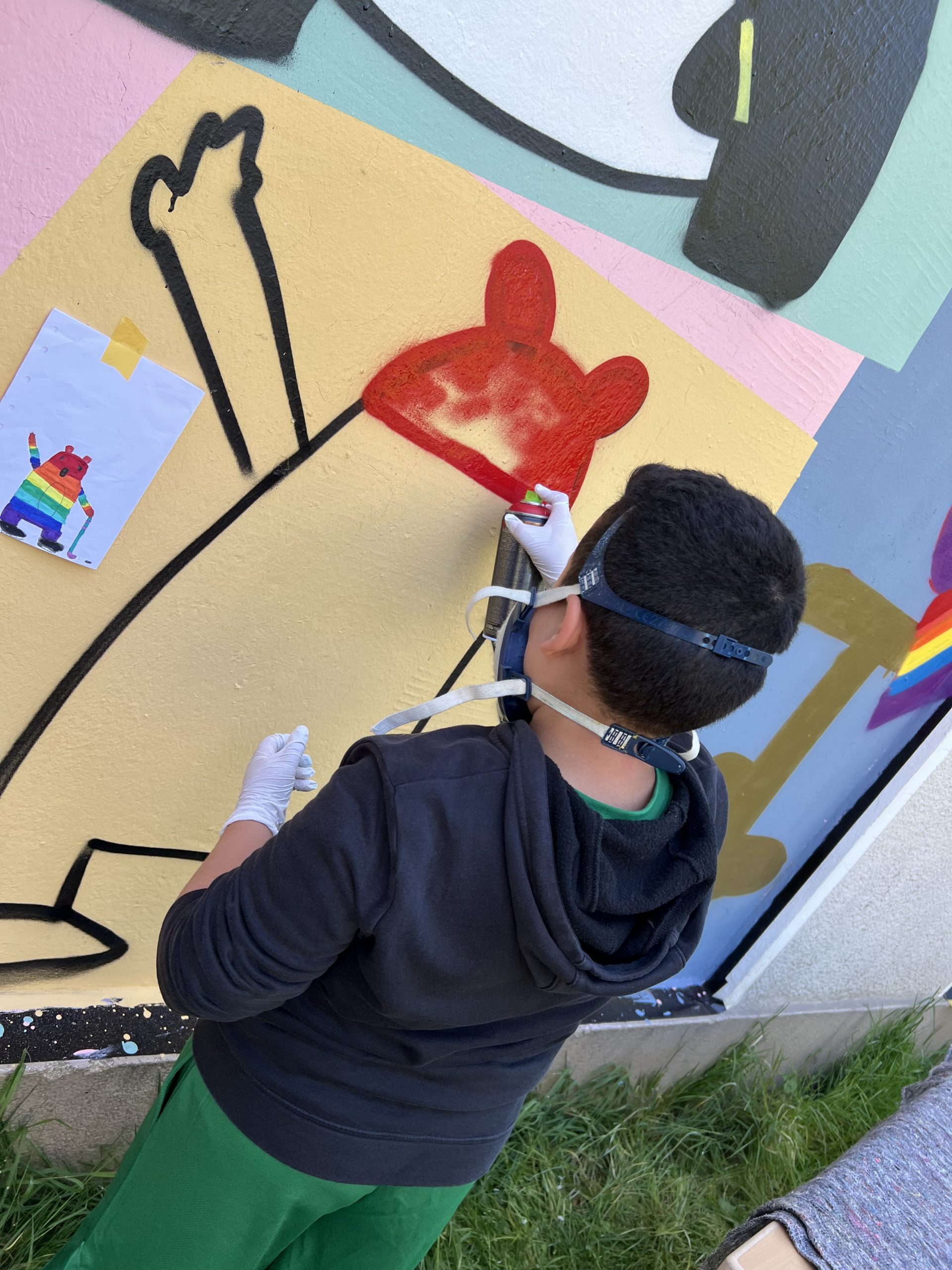 Bei diesem Kunstprojekt haben Viertklässler der Emil von Behring Schule, zunächst verschiedene Sportmotive auf Papier gezeichnet. Aus den zahlreichen eingereichten Zeichnungen, wurden insgesamt 18 Motive für die Wandgestaltung ausgewählt, und unter Anleitung an die Turnhalle auf dem Schulhof gesprüht.
