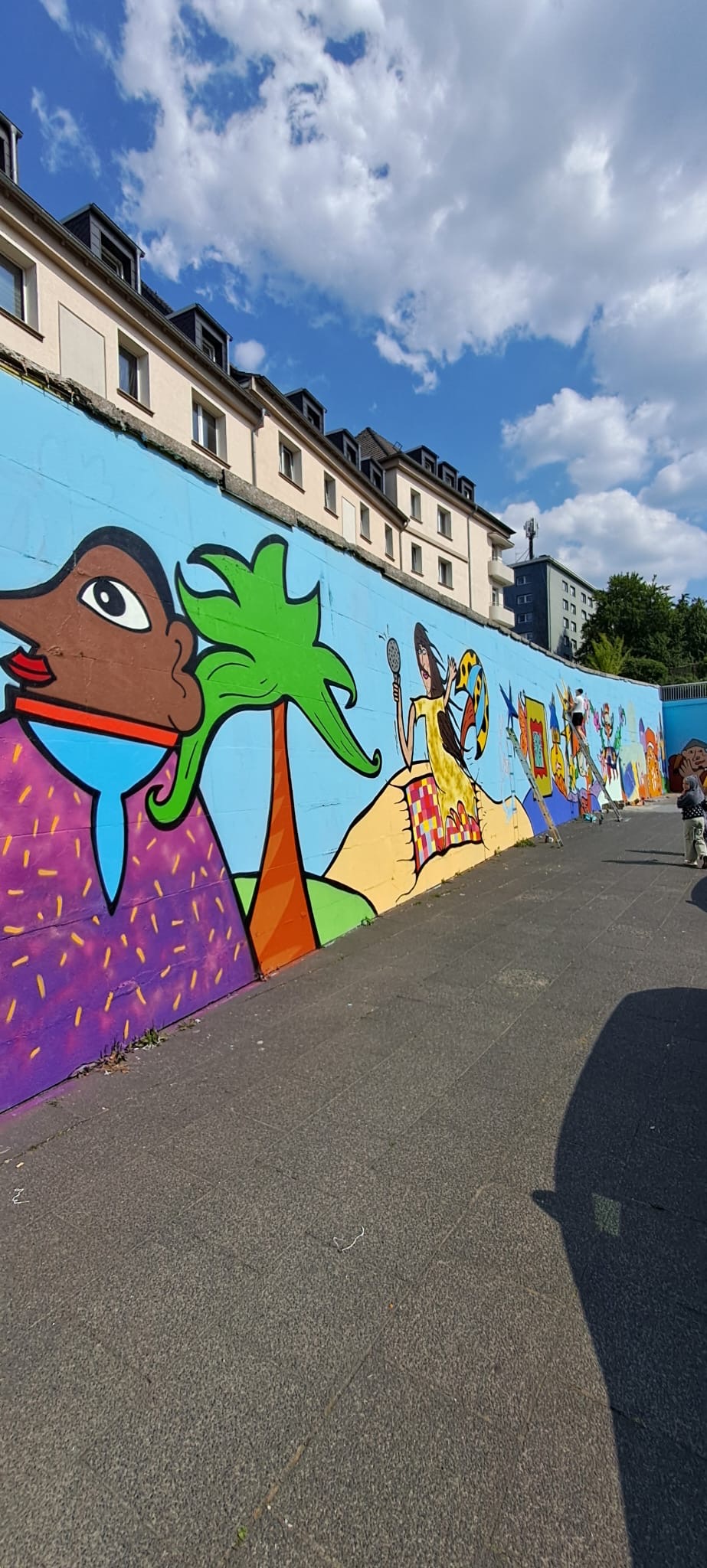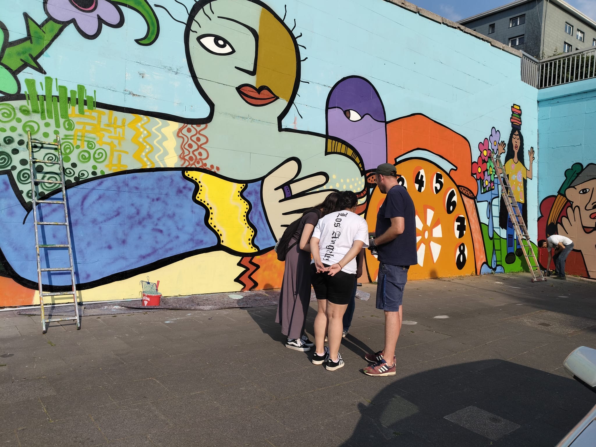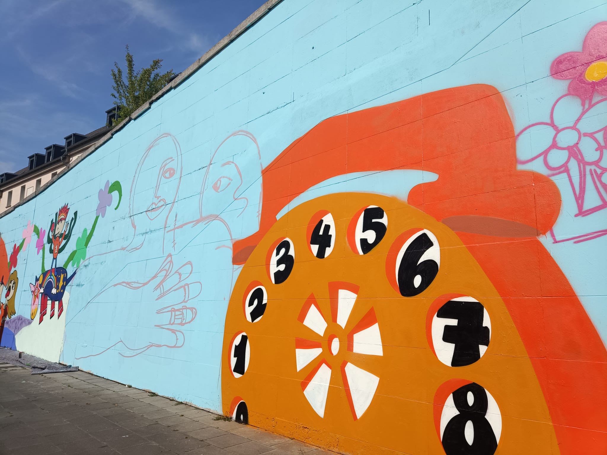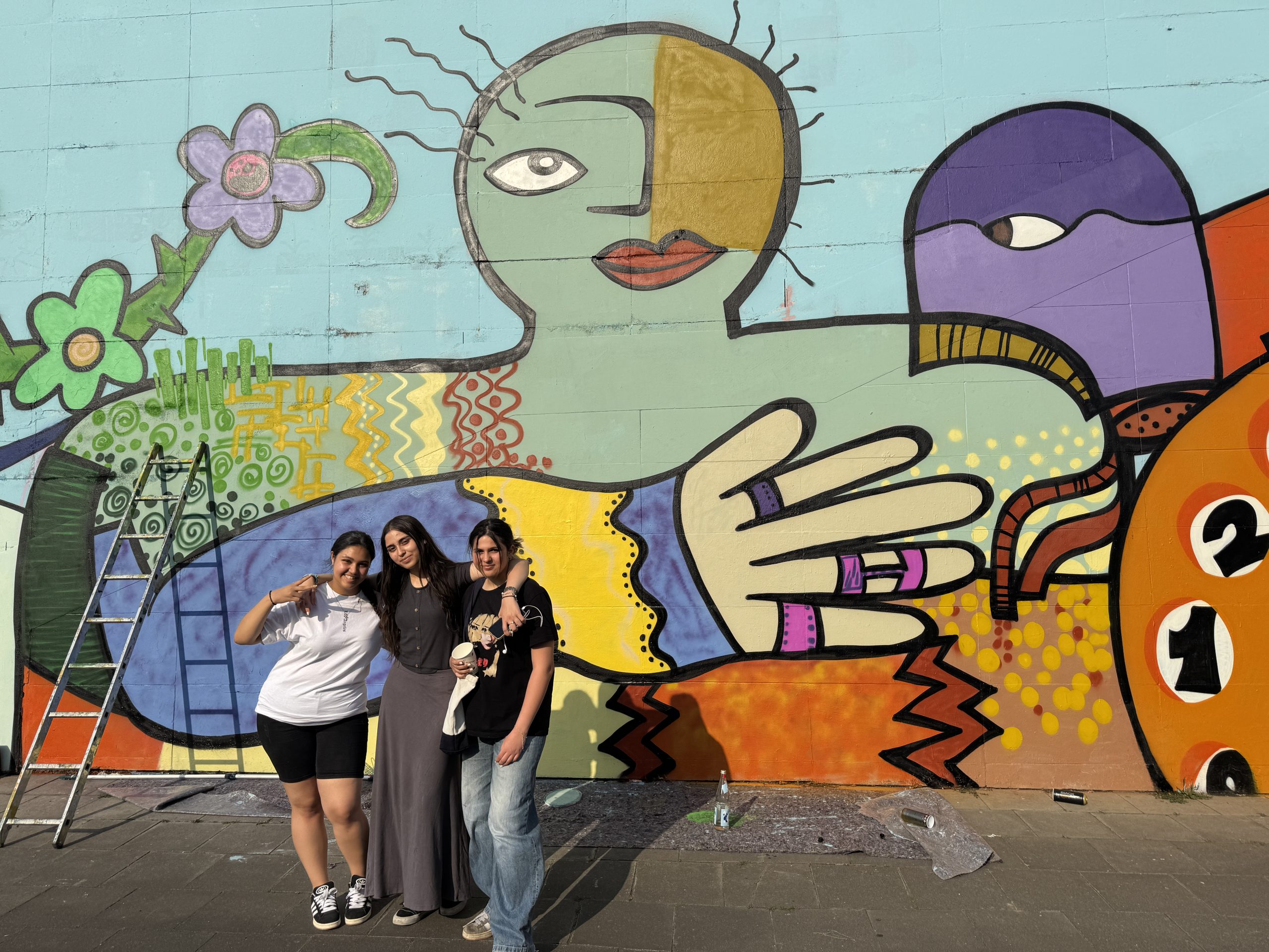 Bei diesem Mural Art Projekt, haben Jugendliche zunächst zahlreiche Entwürfe, inspiriert von Motiven der Künstlerin Moni van Rheinberg, im Storp 9 angefertigt. Im Anschluss wurden die besten Entwürfe ausgewählt und für eine große Fassadengestaltung an der Oberschlesienstrasse im Südostviertel kombiniert. Acht teilnehmende Jugendliche, haben diese Motive unter Anleitung auf die riesige Fassade mit Sprühdosen umgesetzt.