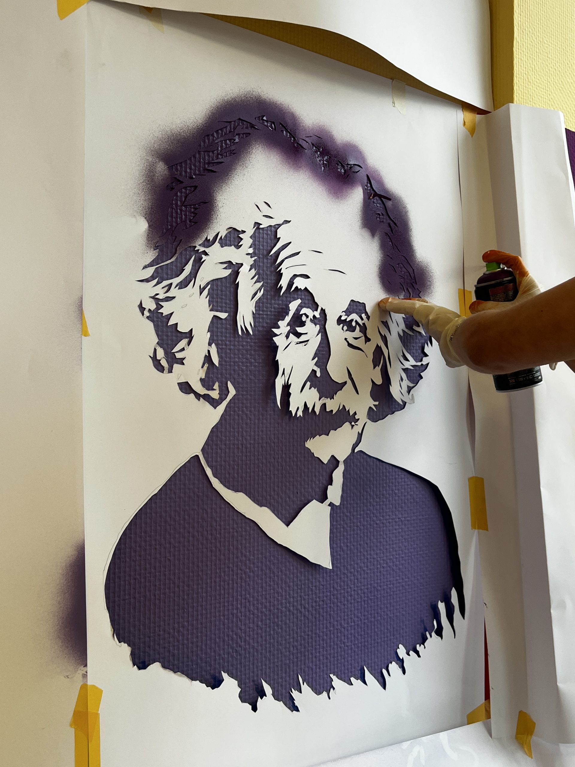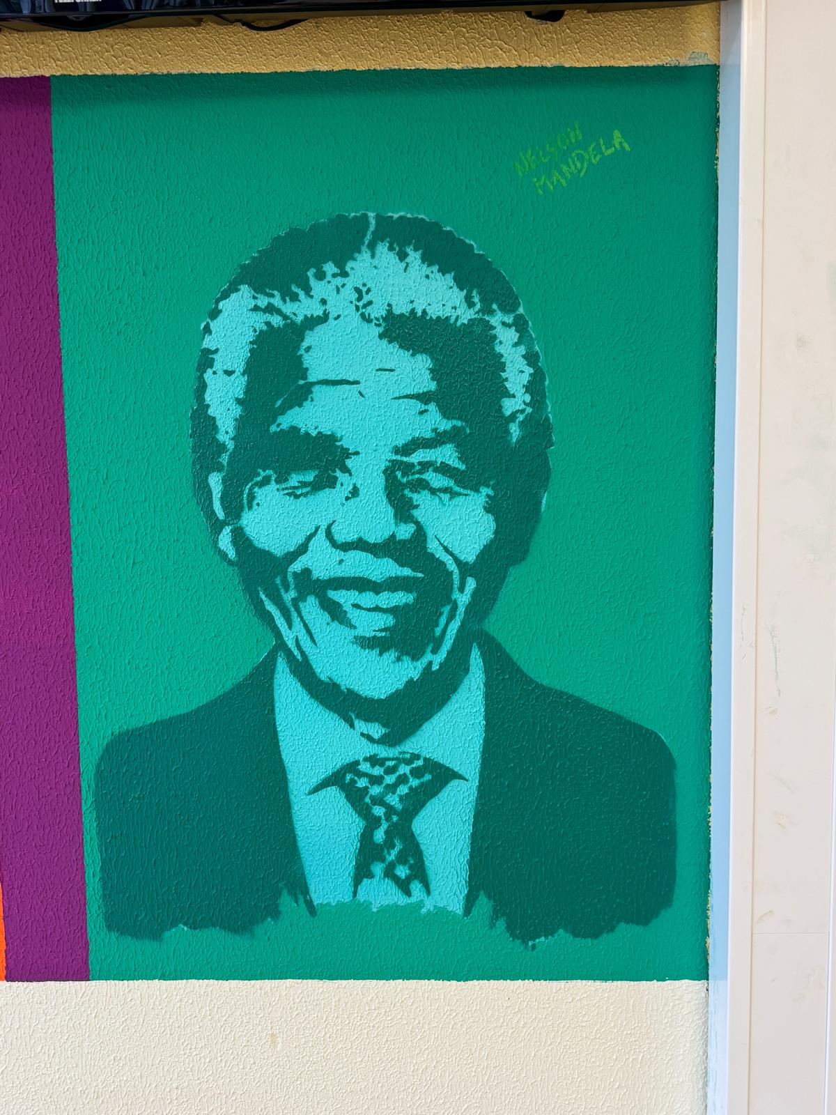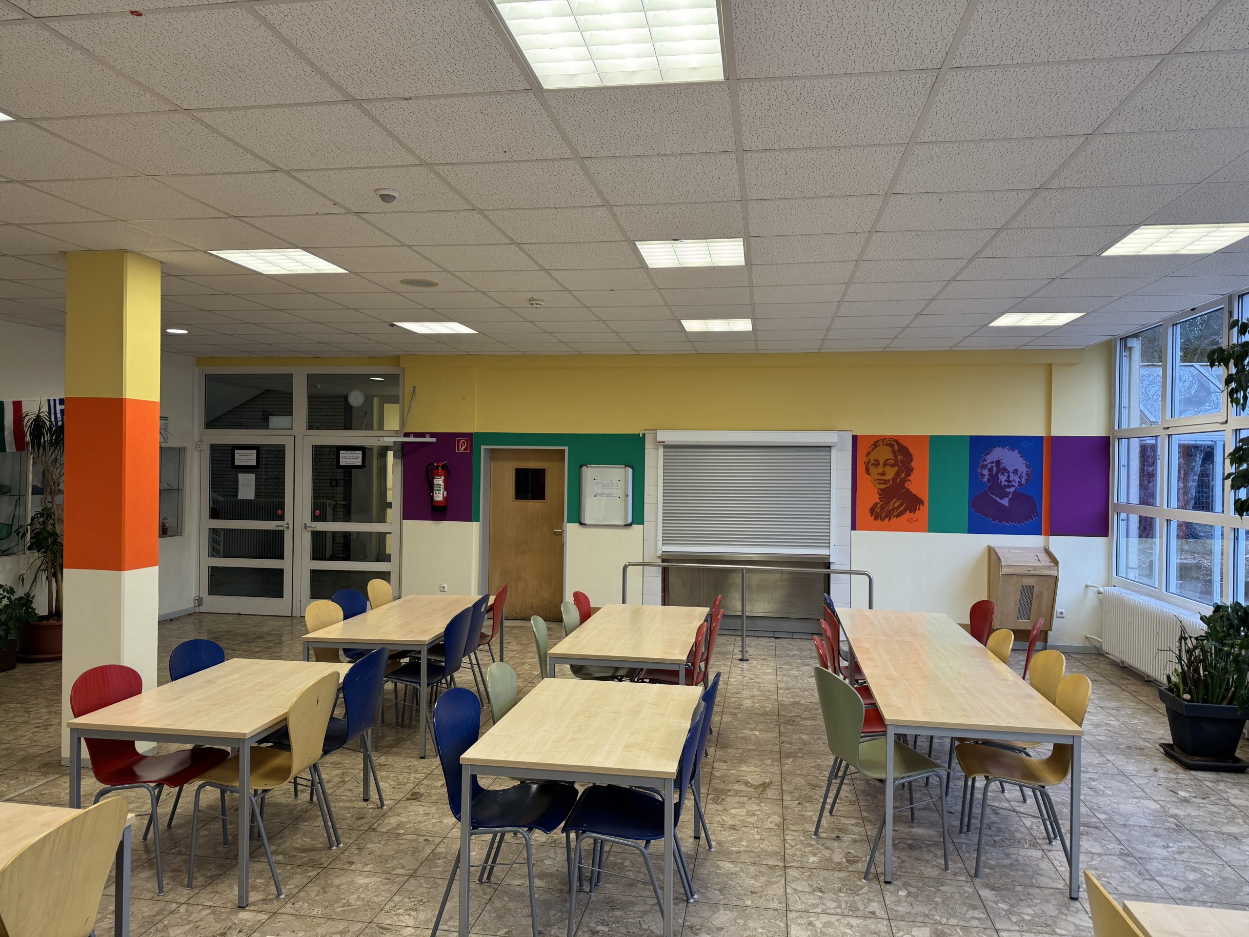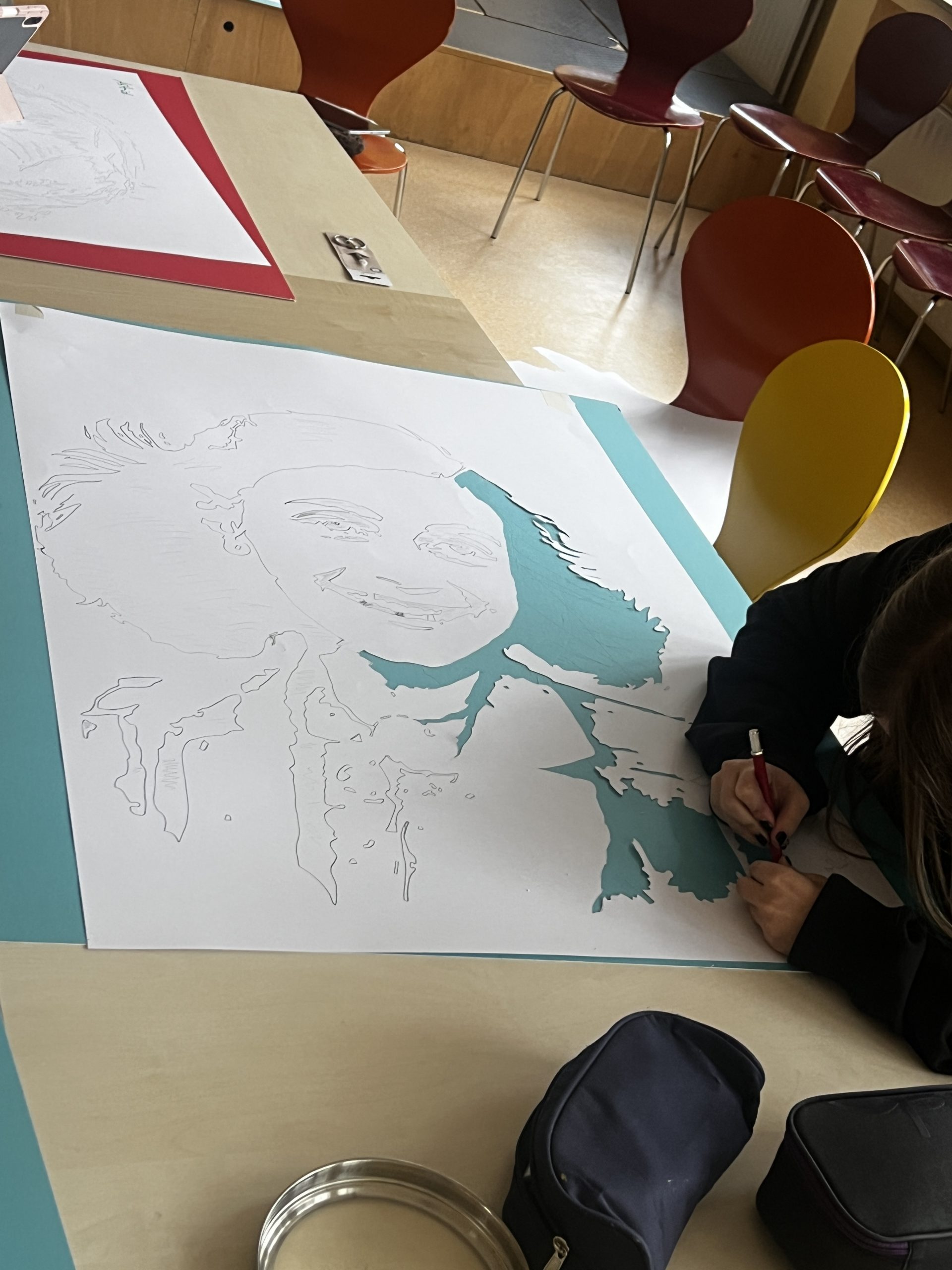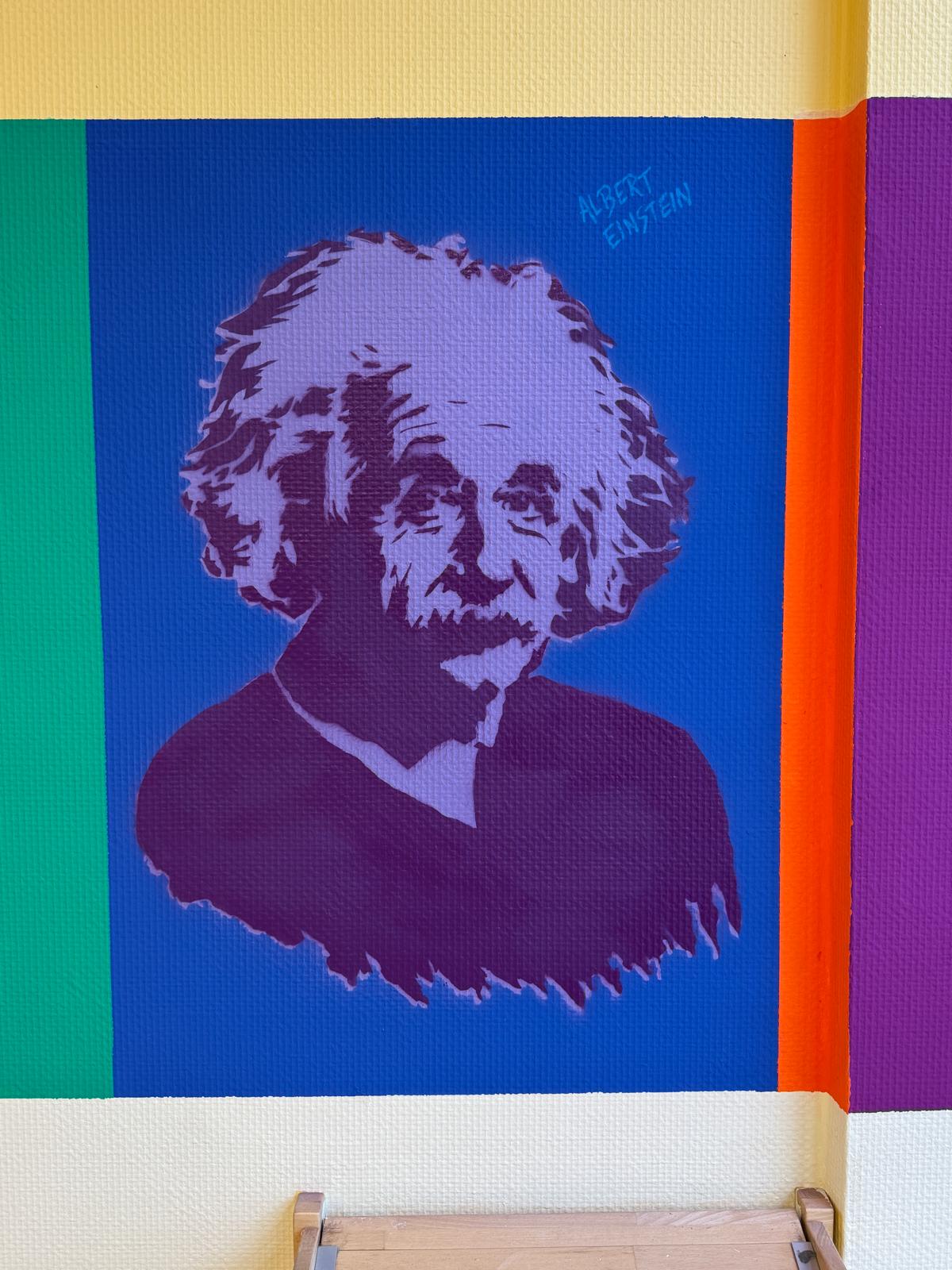 Bei diesem Kunstprojekt wurden Stencils von berühmten Persönlichkeiten aus Politik, Wissenschaft, Sport, Literatur und Kunst von den SchülerInnen gezeichnet, ausgecuttet und in der Mensa der Schule aufgesprüht. Zuvor wurden die Wände mehrfarbig mit einem Farbkonzept gestrichen. Der Ort wurde durch die Gestaltung erheblich aufgewertet.