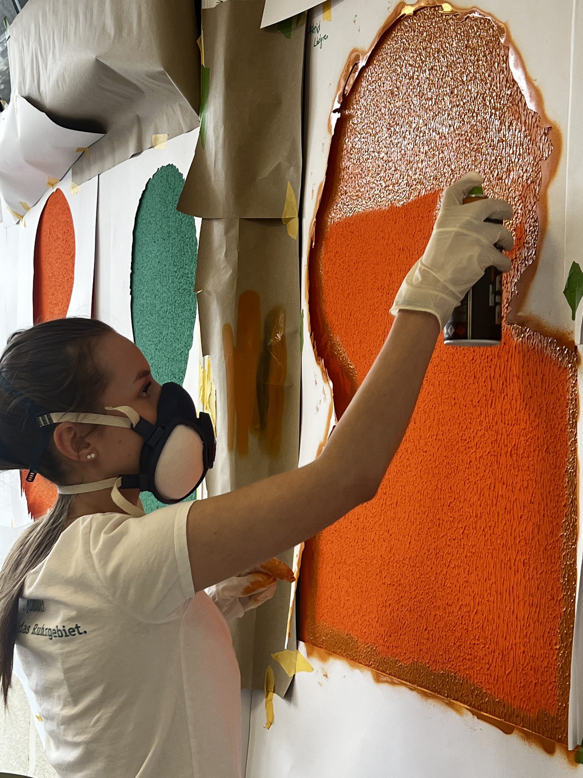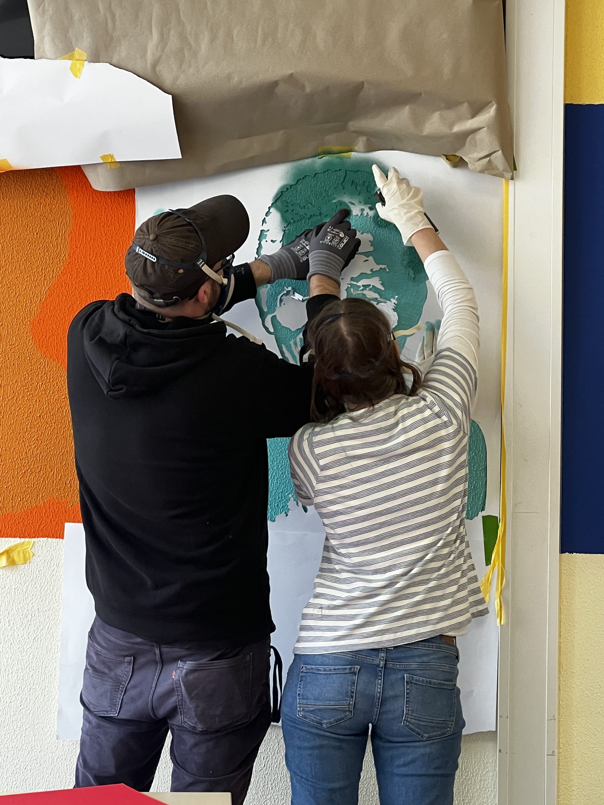 Streetart Projekt mit SchülerInnen in Essen Werden. In Zusammenarbeit mit dem Gymnasium Essen Werden, im Rahmen von Kultur und Schule.